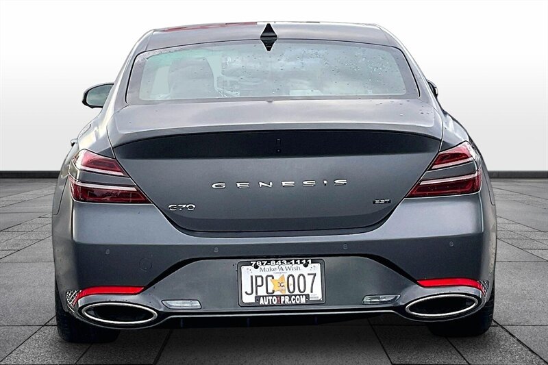 Prepárate para dominar la carretera con este 2022 Genesis G70 3.3T Standard en elegante GRIS con interior negro. Este G70 no es para tibios. Bajo el capó vive un motor 3.3L Twin Turbo V6 de 365 hp y 376 lb-ft de torque que empuja con autoridad. La transmisión automática de 8 velocidades con modo manual y levas al volante ofrece control total cuando lo exiges. Con menos de 42,000 millas y un consumo real de 18 MPG en ciudad y 27 MPG en carretera, se presenta en estado excelente y con funcionamiento impecable.