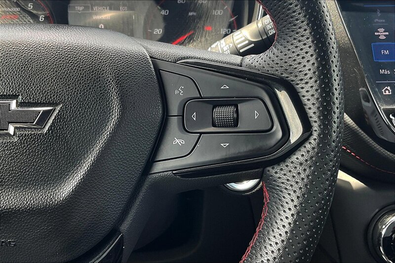 En el interior, la sofisticación continúa con un habitáculo totalmente negro que combina confort y modernidad. Los asientos de tela premium ofrecen soporte y estilo, mientras que el volante forrado en cuero te brinda un agarre firme y deportivo. Equipado con tecnología de punta, el Trailblazer RS cuenta con una pantalla táctil de 8 pulgadas compatible con Apple CarPlay y Android Auto, permitiéndote mantenerte conectado mientras disfrutas del viaje.