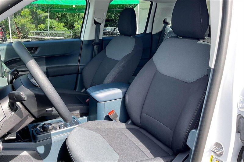 Exterior en un refinado color BLANCO que impone presencia y facilita su mantenimiento. El interior en una combinación de tonos negros con un acabado en tela resistente, elegante y práctico para el uso diario o las jornadas de trabajo. Arquitectura de cabina pensada para durabilidad y comodidad.
